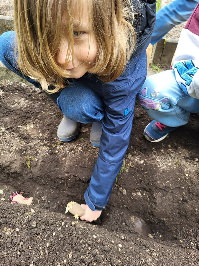 In dieser Woche durften unsere Schulgartenkinder mit der 1. Pflanzung loslegen. Endlich!